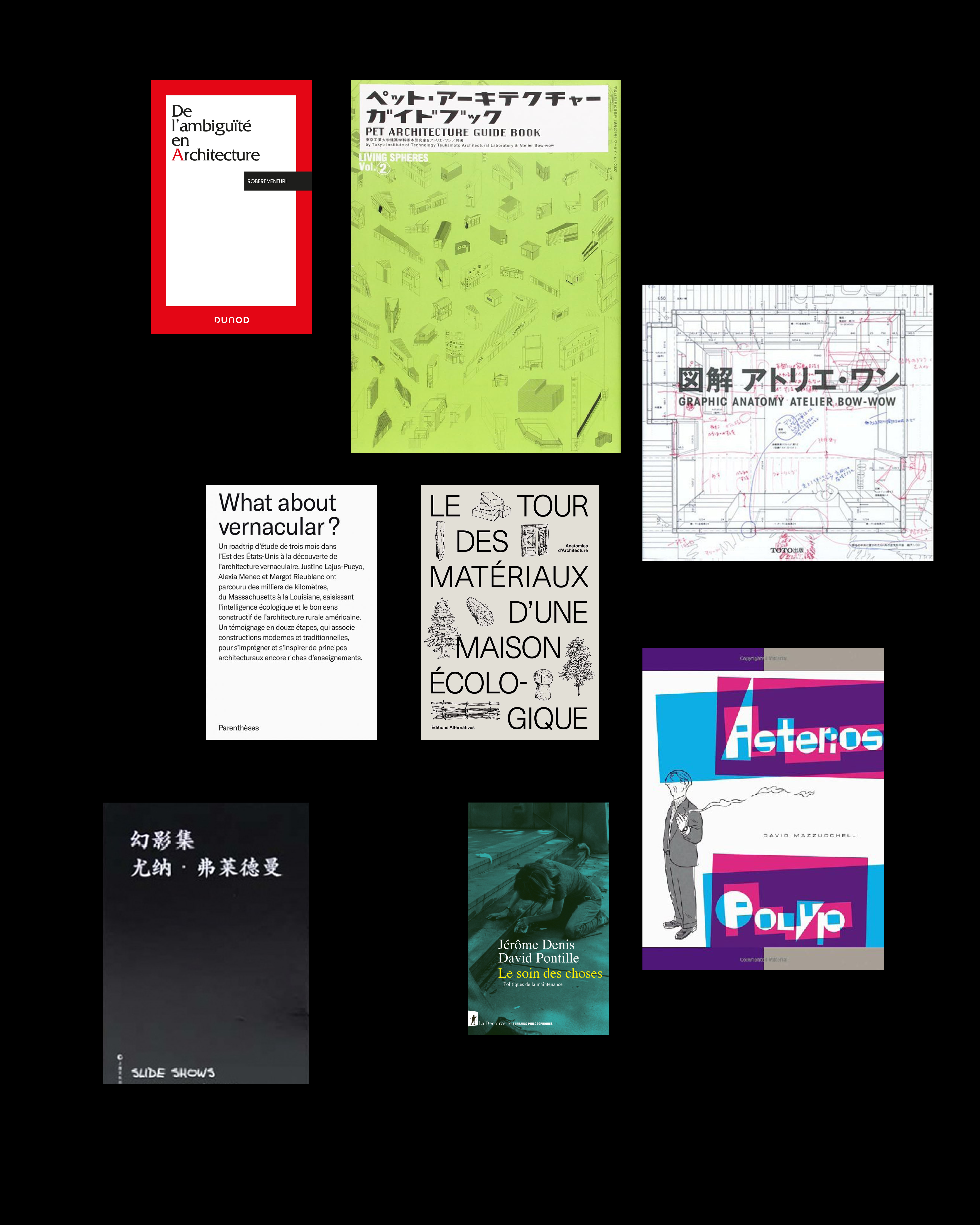 cove : Pour la révélation que fut pour nous ce catalogue de micro-architectures spontanées, nées de la pression foncière extrême sur les terrains de Tokyo. Comme l’ensemble des recherches de l’Atelier Bow-Wow et du Tsukamoto Lab, cet ouvrage nous inspire en invitant à redécouvrir les choses a priori ordinaires qui composent notre environnement.
