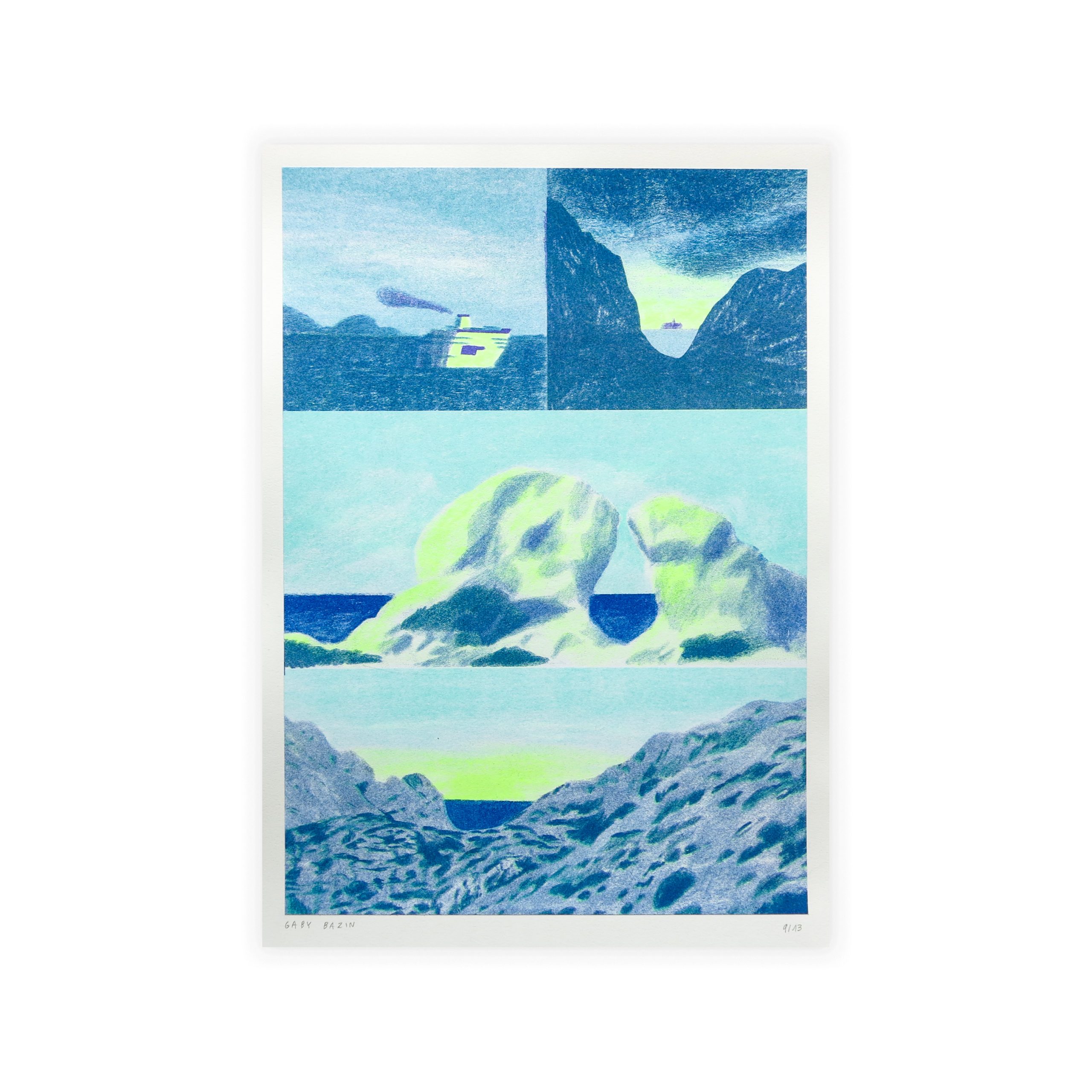 À travers des jeux de tracé et de construction typographique, Gaby Bazin partage avec les jeunes lecteurs le plaisir de l’écriture. Dans des albums soigneusement documentés, elle les entraîne dans une découverte joyeuse des métiers de l’estampe. Sa pratique des techniques d’impression artisanales (gravure, sérigraphie…) guide la composition de ses images, précises et minimalistes.