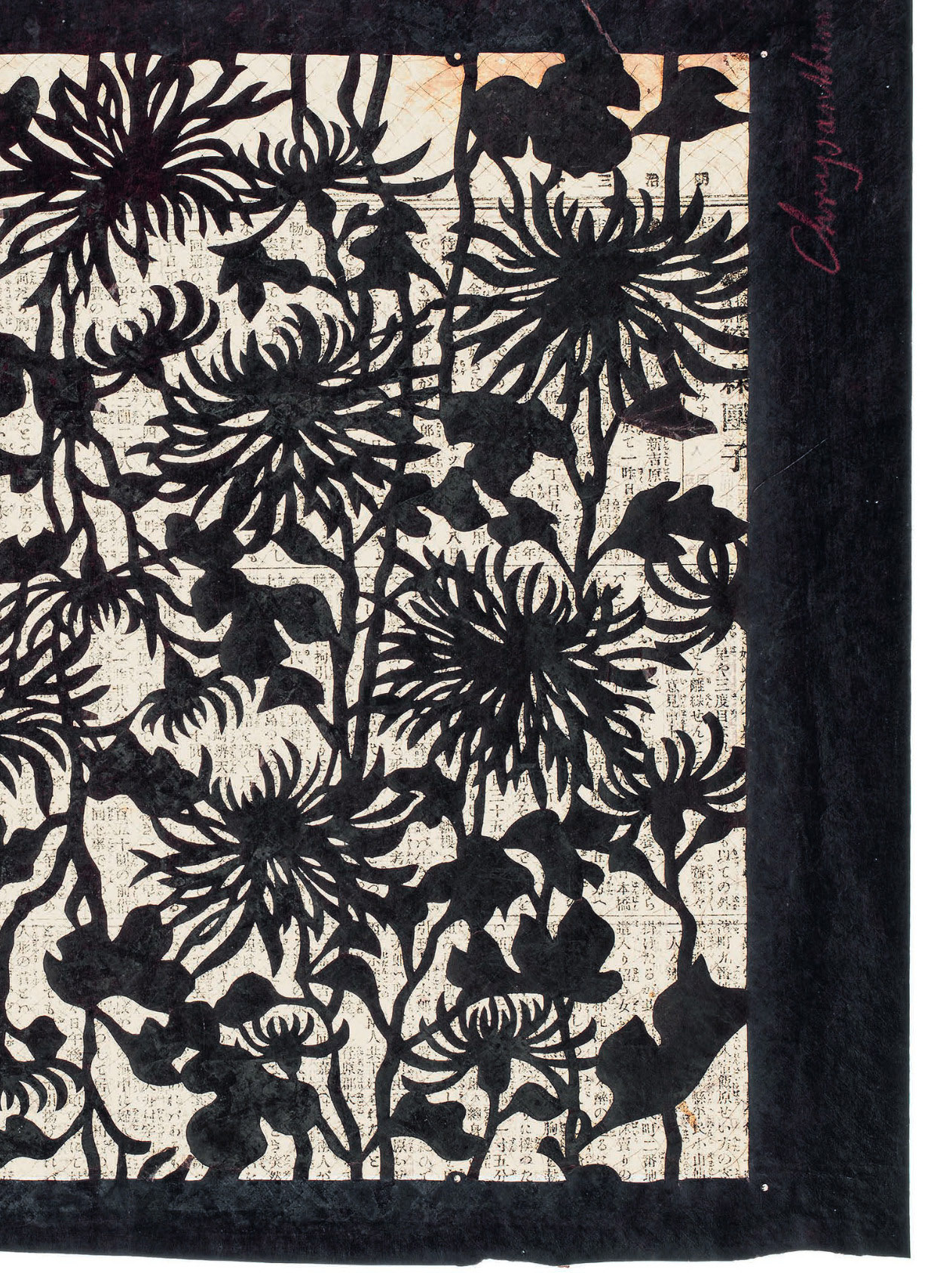 Éventails et chrysanthèmes : Motifs de Katagami