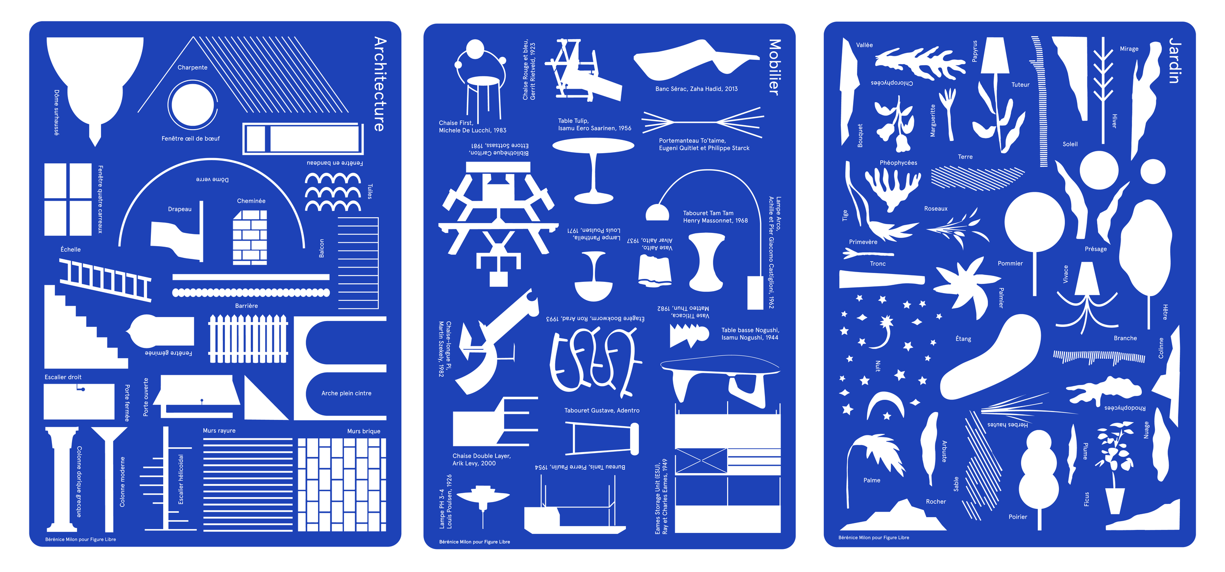 Bérénice Milon est une artiste et designer française. Elle tisse une grammaire visuelle riche et cohérente en investissant des domaines variés comme le graphisme, l’illustration, l’édition, le design textile ou la création d’objets.
