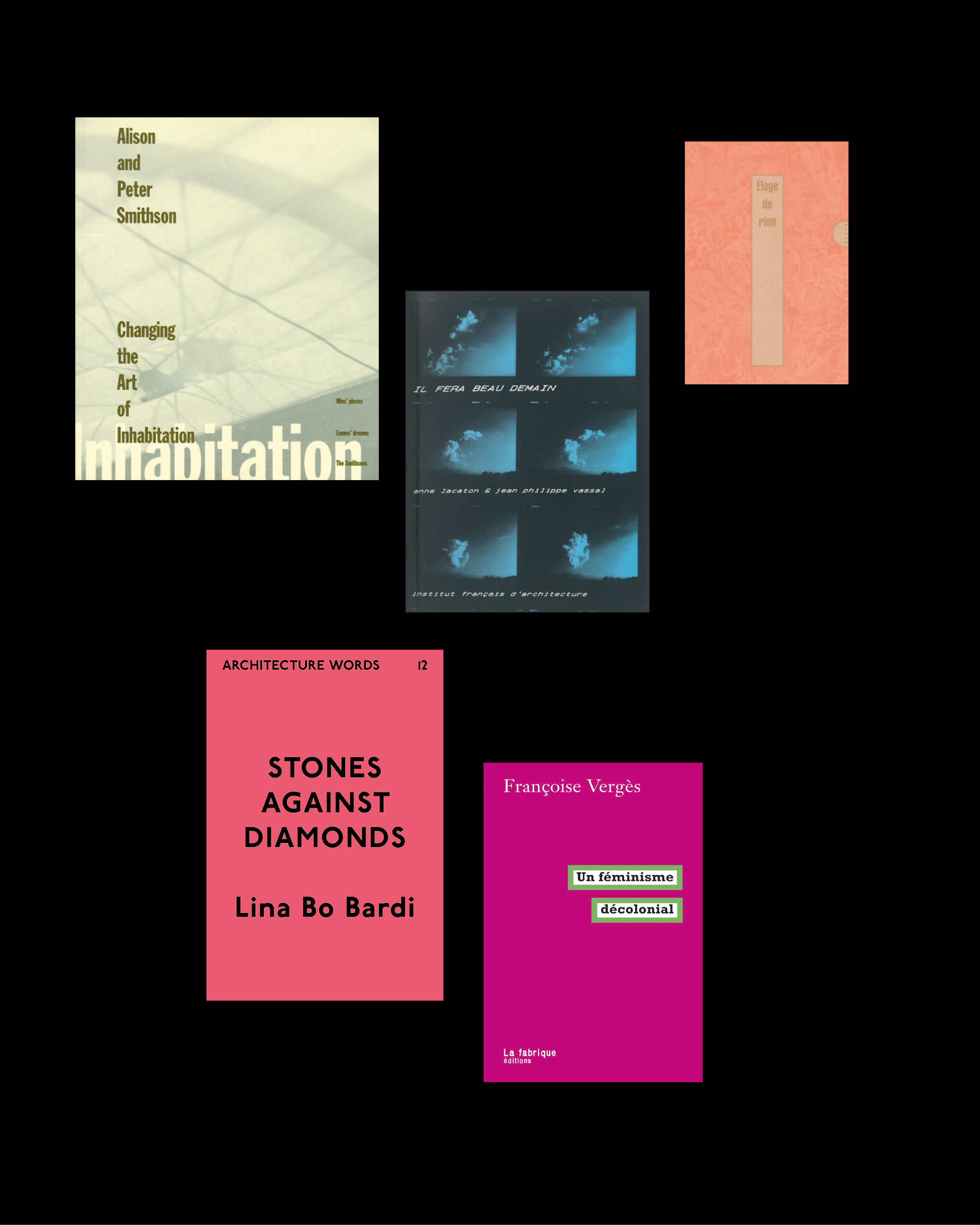 atelier local : Nous avons choisi ce livre de Alison & Peter Smithson, publié après le décès d’Alison, en hommage à tous leurs autres livres et projets. Nous les aimons surtout pour leur capacité à nous faire renouveler le sens des choses les plus ordinaires. Mais le titre de celui-ci en particulier résume aussi l'objectif que, peut-être naïvement, nous croyons avoir hérité d'un désir actif de changer l'art de vivre. Comme l'écrivait le philosophe auparavant, notre but ne doit plus être seulement d'interpréter le monde, mais de le transformer.