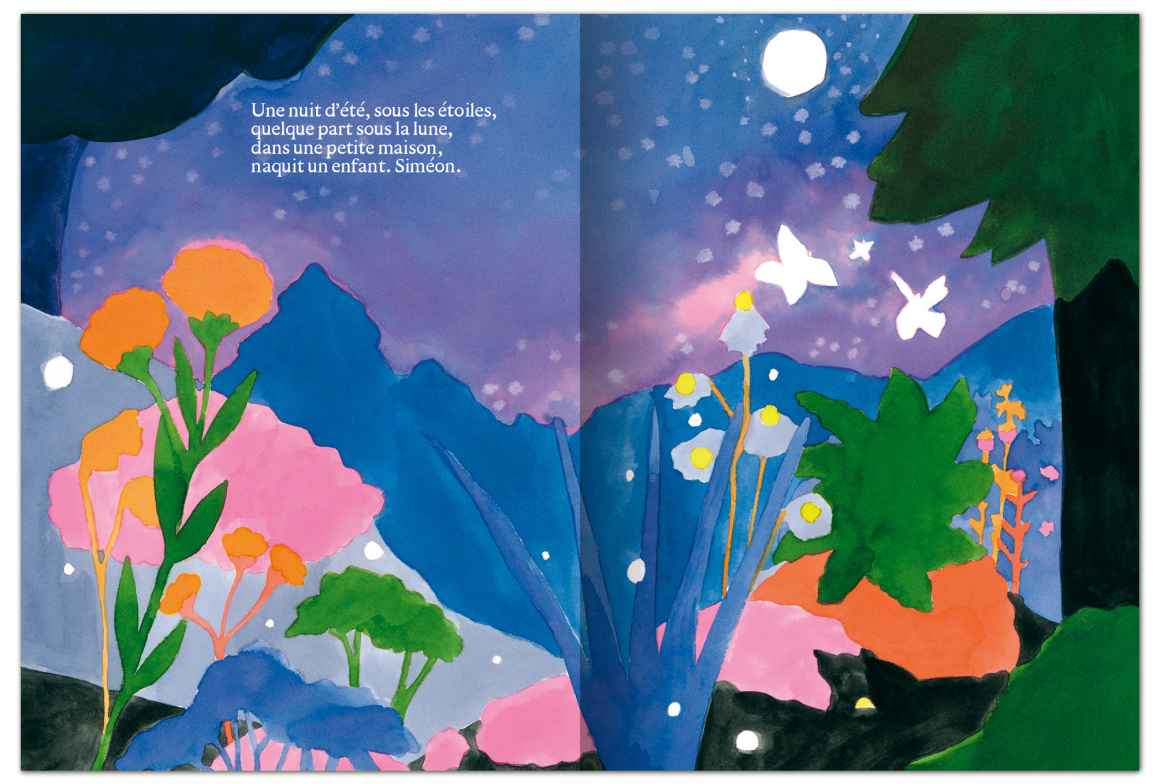 Une nuit d’été, sous les étoiles, Siméon s’enfonce dans le jardin, à la recherche de son précieux tambour. Mais dans le silence de la nuit, Siméon va trouver bien plus qu’il ne cherche… Siméon est un enfant comme les autres, ou presque. Siméon ne s’exprime qu’à l’aide d’un tambour qui l’accompagne partout. Alors quand son précieux instrument disparait la veille de ses 6 ans, tout devient très compliqué. Après avoir fouillé la maison pendant deux jours, Siméon décide de partir à la recherche de son compagnon dans le grand jardin, et s’il le faut, au-delà, dans la forêt et les montagnes. Durant sa quête, l’enfant devra affronter la nuit et l’inconnu, prêter attention aux bruits et aux silences des autres. Il découvrira de nouvelles facettes de sa personnalité et au milieu de tout cela, peut-être trouvera-t-il sa propre voix ?
