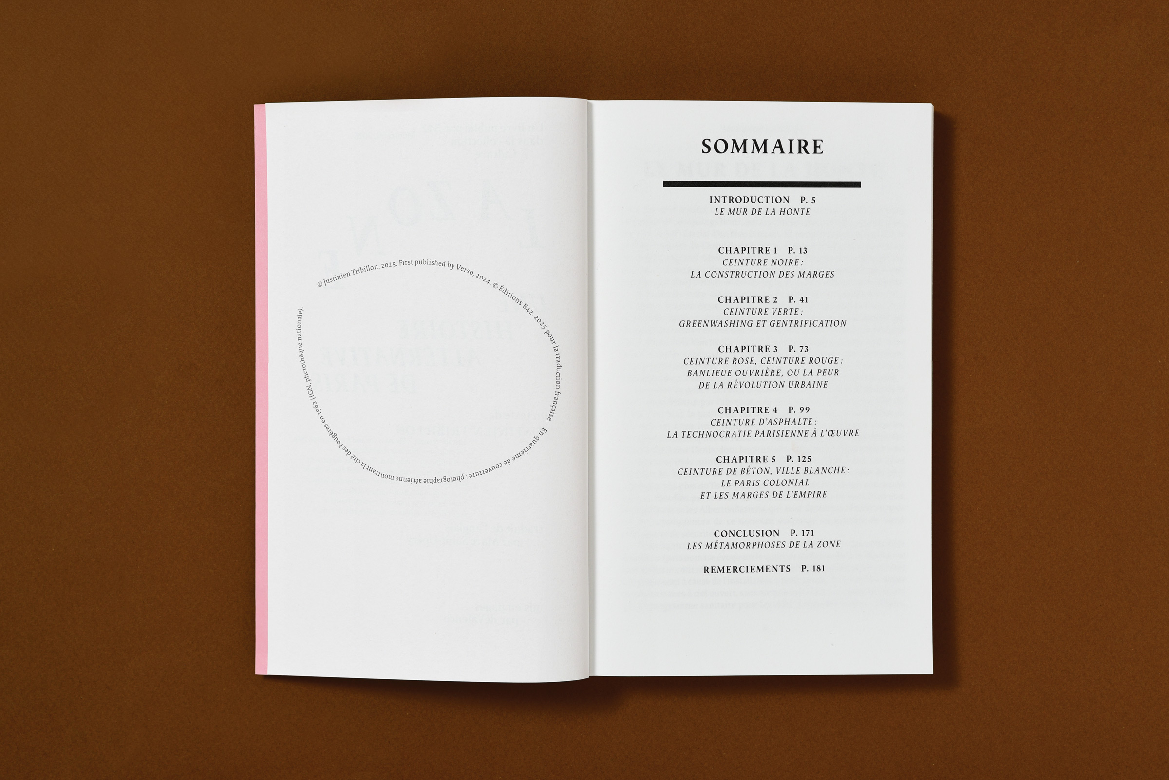 Paris jouit d’une aura planétaire. Elle est partout synonyme de beauté, d’élégance, de culture et de romantisme. Décrite par les auteurs les plus talentueux, représentée par les plus grands peintres, capturée par les photographes les plus cotés, elle existe à travers des millions d’images et de reproductions de par le monde. Ce dont on a beaucoup moins conscience, c’est que la périphérie de Paris est elle aussi un espace mythique, bien que plus lointain, moins tangible que le Paris des cartes postales. La banlieue subsiste comme un flou artistique, associée à des clichés le plus souvent négatifs qui incluent généralement les grandes tours modernistes, des scènes de violence et des voitures incendiées. Paris et sa banlieue sont donc deux espaces mythiques et géographiques, construits en opposition réciproque. Leurs histoires s’enchevêtrent pour former un amalgame complexe de choix urbanistiques, de politiques sociales, de colonialisme, d’immigration, de décisions administratives, de stratégies de maintien de l’ordre, de peurs et de haines. Cette opposition entre Paris et sa banlieue se cristallise autour d’un espace spécifique : la Zone. Marge frontalière, espace intermédiaire qui sépare les limites extérieures de Paris des limites intérieures de la banlieue, qui engendre une démarcation brutale entre le « dedans » et le « dehors ». C’est la construction de cette opposition entre Paris et banlieue à partir de cet espace liminaire que Justinien Tribillon explore dans ce livre.