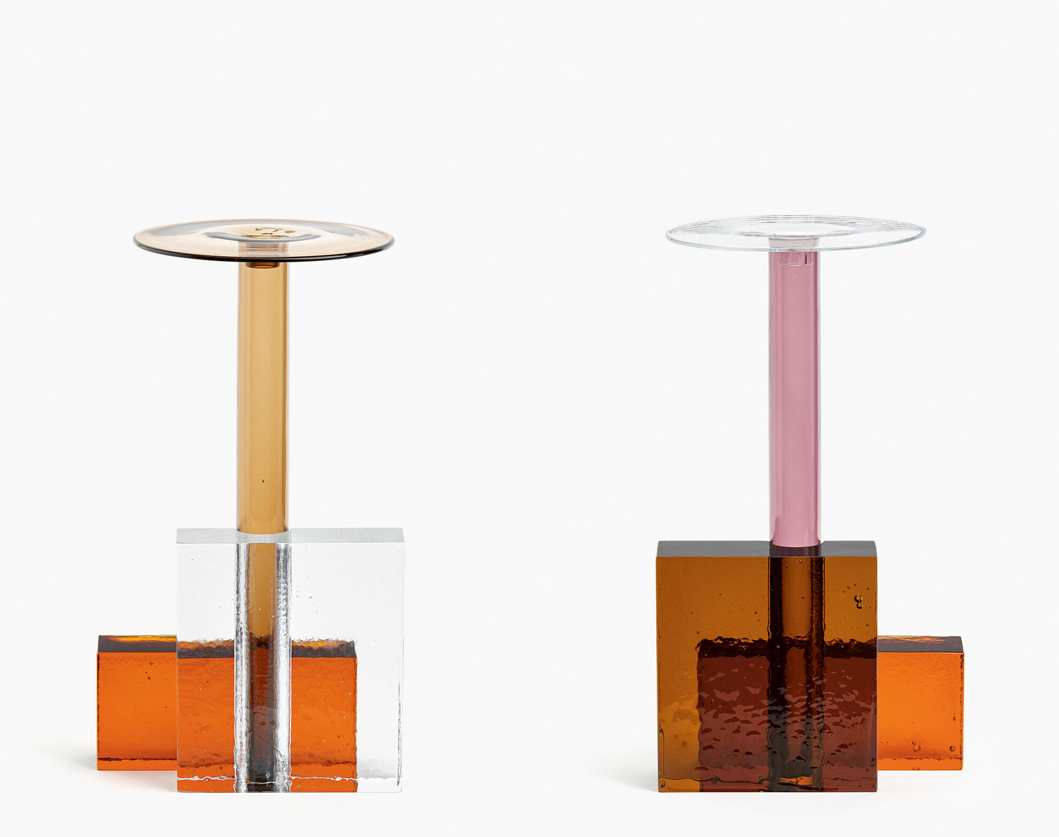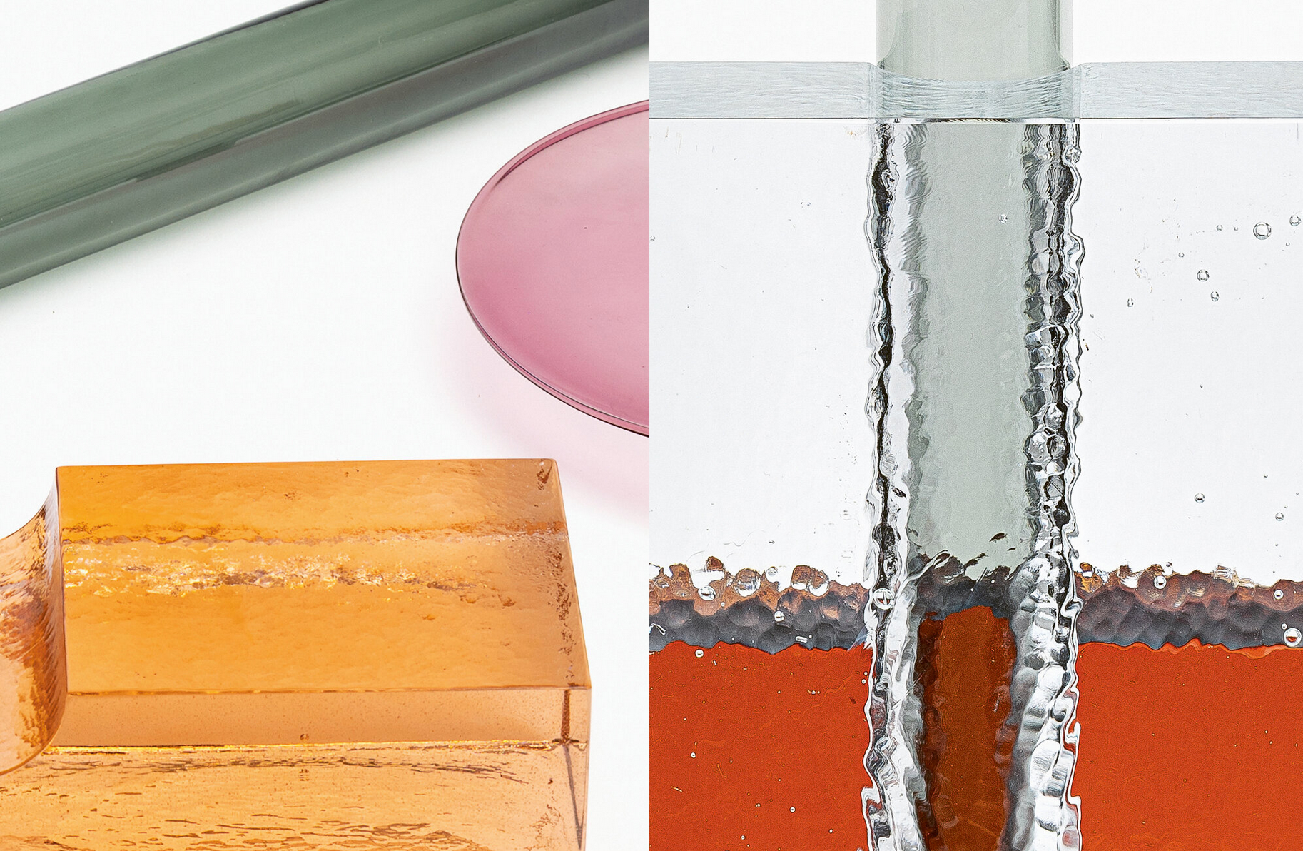 Une série de vases créés par Ronan Bouroullec réalisés à Murano, en collaboration avec le maître verrier Simone Cenedese : de grands blocs présentant une palette originale utilisant le « cotissi » de Murano, combiné à des éléments qui explorent les couleurs du verre soufflé.